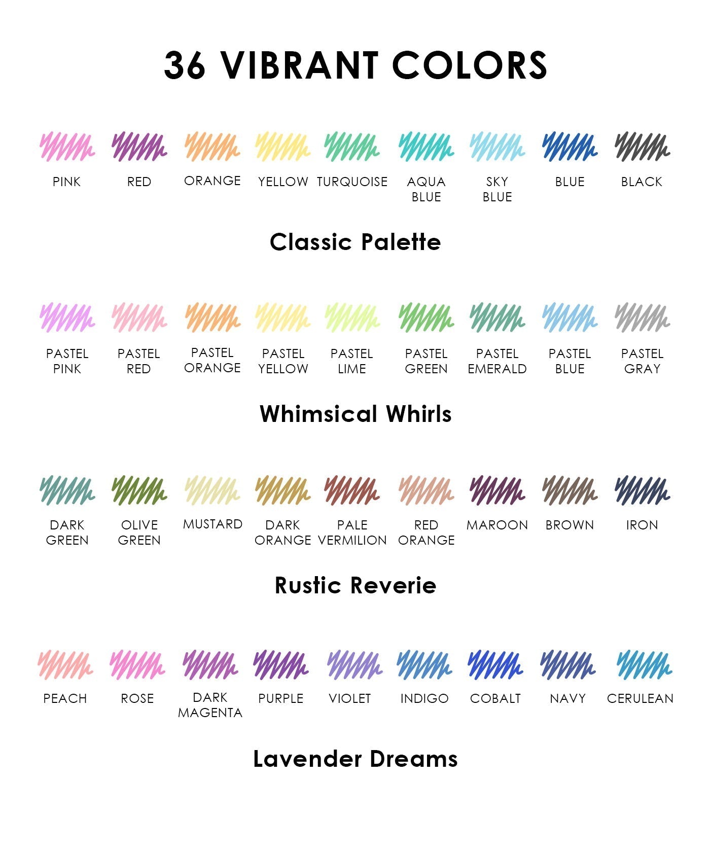 - VIBRANT COLOR COLLECTION - Elevate your creativity with Grabie’s Medium Point Erasable Gel Pen Set, featuring an impressive collection of 36 vibrant colors divided into four unique palettes. Choose from the Classic Palette for timeless hues, Whimsical Whirls for delightful pastels, Rustic Reverie for warm morandi tones, and Lavender Dreams for dreamy blue-purple shades. This diverse color selection allows you to express your artistic vision with endless possibilities, perfect for bullet journaling, study notes, and planner decoration using the best gel pens.