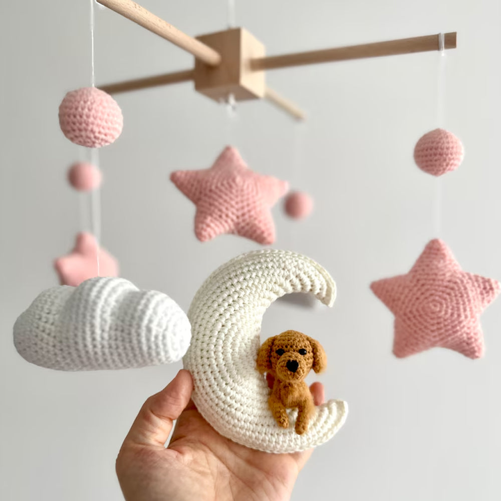 Pet Moon Pink | Custom Crochet Pet Nursery Baby Mobile