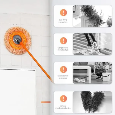 Reinigen Sie Fenster, Jalousien, Böden, Decken, Autofelgen, Keramik und unzählige andere Oberflächen mit diesem vielseitigen Wischmopp!
